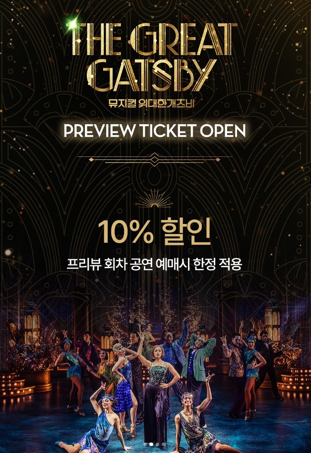 이처럼 프리뷰 공연은 단순한 시범 무대를 넘어 오직 이 시기에만 참여할 수 있는 관객과의 첫 만남이자 축제의 순간입니다. 위대한 개츠비를 누구보다 먼저 만나고, 특별한 기억을 남기고 싶다면 지금 예매를 서두르세요!