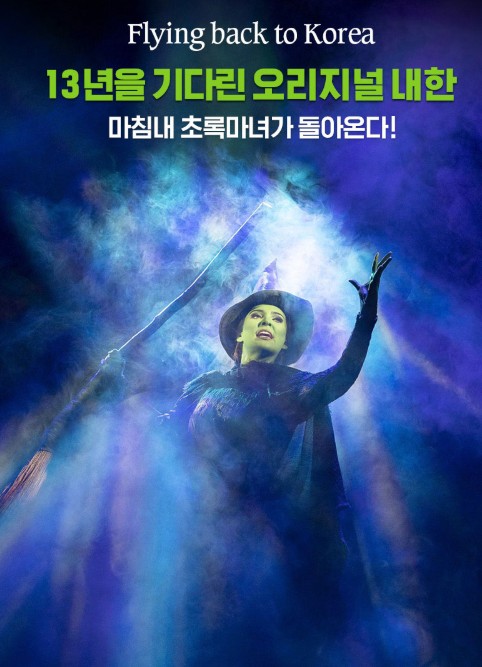 13년 만에 한국을 찾은 위키드는 초록 마녀 ‘엘파바’와 금발 마녀 ‘글린다’의 운명과 우정을 다룬 이야기로, 전 세계 7천만 명 이상의 관객을 사로잡은 브로드웨이 대표작입니다. 이번 투어는 서울을 시작으로 부산(2025.11 예정, 드림씨어터), 대구(2026.01 예정, 계명아트센터)로 이어질 예정입니다.