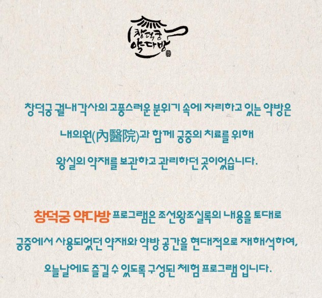 ‘창덕궁 약다방’은 조선의 식문화와 치유 철학을 담은 특별한 문화예술 체험입니다.