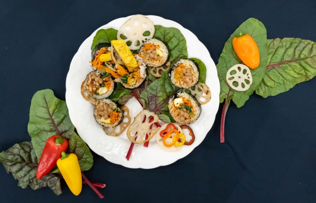 구운 가지와 백태(콩) 후무스로 채워진 건강식 김밥