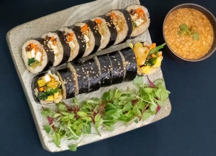 밥이 밖으로 나온 유니크한 누드김밥 + 고소한 두유 소스 - 6. 광주/연천 – 가지구이 & 백태 후무스 김밥