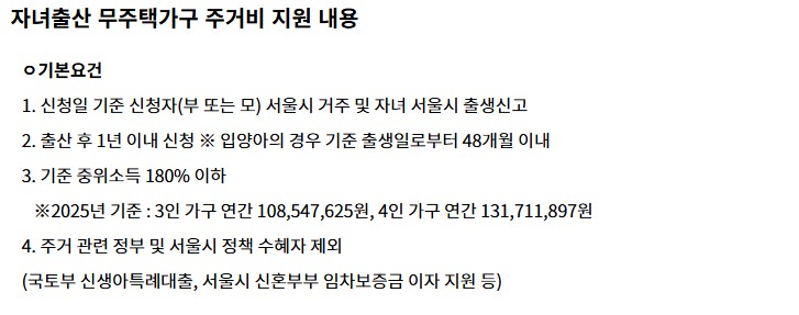 - 무주택 가구 (SH·LH 등 공공임대 제외)