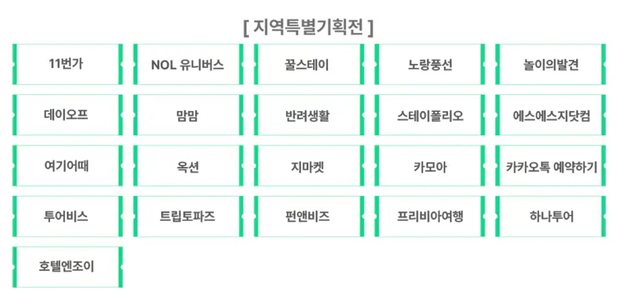 - 여기어때, 호텔엔조이, 하나투어, 11번가, 지마켓, SSG닷컴, 옥션
