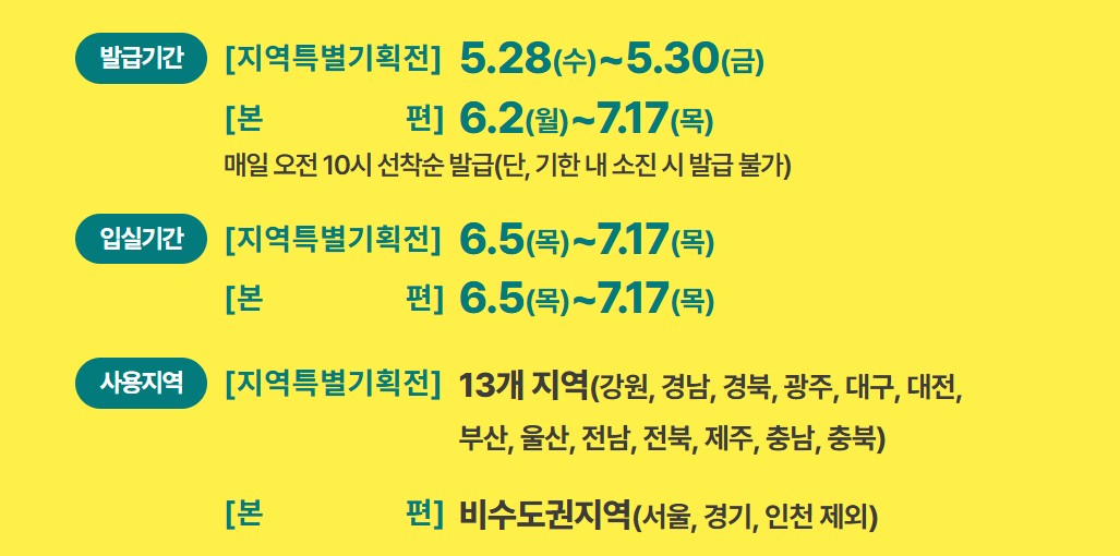 ※ 동일 ID 기준, 지역특별기획전 쿠폰을 사용한 경우 본편 쿠폰 발급이 제한될 수 있습니다.