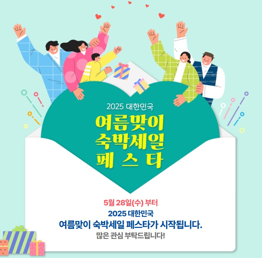 2025년 본격적인 여름휴가 준비, 지금이 바로 5만 원 할인받고 여행 떠나실 수 있는 시간입니다! 한국관광공사와 국내 대표 여행사들이 참여한 ‘대한민국 여름맞이 숙박세일 페스타’! 5월 28일부터, 단 3일간, 매 10시, 할인권 발급이 시작됩니다. 전국 13개 지역, 5만 원씩 저렴하게 숙박 예약하세요!