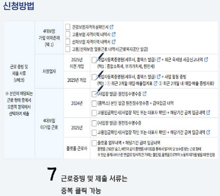 ※ 근로인정 증빙서류의 경우 기준기간 준수(2024.06.01~2025.03.31)